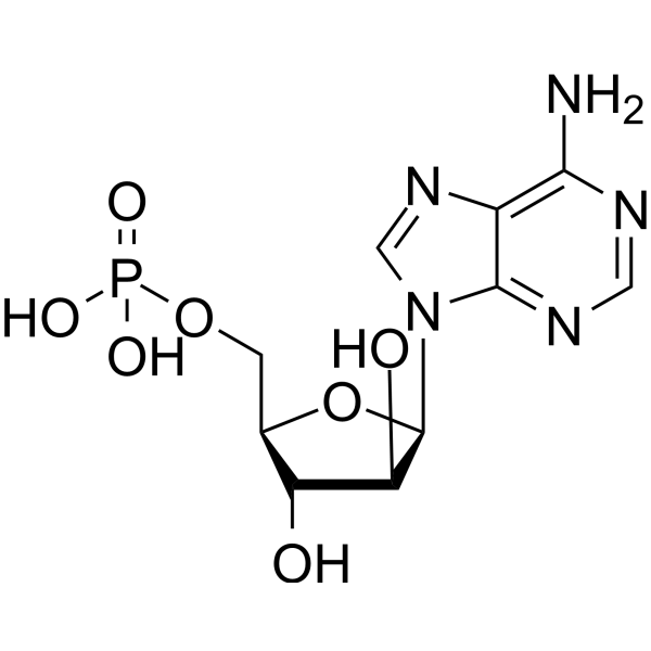 Vidarabine phosphate (Ara-AMP) 是一种抗病毒剂,可抑制慢性乙型肝炎病毒 (HBV) 感染。Vidarabine phosphate 还可以对抗单纯疱疹病毒和水痘带状疱疹病毒。