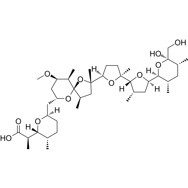 Nigericin 是一种抗生素 (antibiotic),源自 Streptomyces hygroscopicus,充当 K+/H+ 离子载体 (K+/H+ ionophore),促进 K+/H+ 跨线粒体膜交换。Nigericin 通过降低细胞内 pH (pHi) 和 Wnt/β-catenin 通路信号而显示出良好的抗癌活性。Nigericin 在 TNBC 中通过 caspase 1/GSDMD 途径诱导细胞焦亡 (pyroptosis)[3] 。