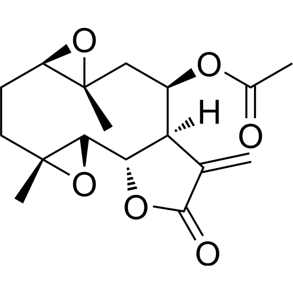 Epitulipinolide diepoxide (compound 9) 是一种天然草本植物鹅掌楸的天然产物。Epitulipinolide diepoxide 对 A375 细胞显示细胞毒性,IC50 值为 52.03 μM。