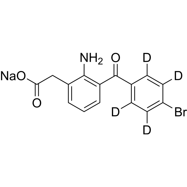 Bromfenac-d4 (sodium) 是 Bromfenac (sodium) 氘代物。Bromfenac sodium 是一种有效的和具有口服活性的 COX 抑制剂,抑制 COX-1 和 COX-2 的 IC50 值分别为 5.56 和 7.45 nM。Bromfenac sodium 是一种溴化非甾体类抗炎 (NSAID),通常用于白内障手术后的术后炎症和疼痛以及假晶状体囊状黄斑水肿 (CME) 的研究。