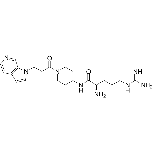 HF50731 (化合物 21) 是一种有效的 CXCR4 拮抗剂。HF50731 具有较强的 CXCR4 结合亲和力,IC50 为 19.8 nM。HF50731 通过 CXCR4 共受体有效抑制钙动员、细胞迁移和 HIV-1 感染,IC50 值分别为 119.2 nM、621.4 nM 和 1.5 μM。