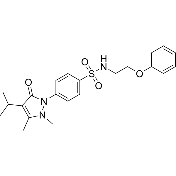 BC-LI-0186 是一种有效的选择性亮氨酸 tRNA 合成酶 (Leucyl-tRNA synthetase (LRS)) 与 Ras 相关的 GTP 结合蛋白 D (RagD) 相互作用的抑制剂 (IC50=46.11 nM)。BC-LI-0186 与 LRS 的 RagD 相互作用位点 (Kd=42.1 nM) 竞争,并对 LRS- vps34、LRS- eprs、RagB-RagD 缔合、mTORC1 复合物的形成没有产生影响。BC-LI-0186 能有效抑制肿瘤相关 MTOR 突变体的活性和雷帕霉素耐药癌细胞的生长。BC-LI-0186 可用于肺癌的相关研究。