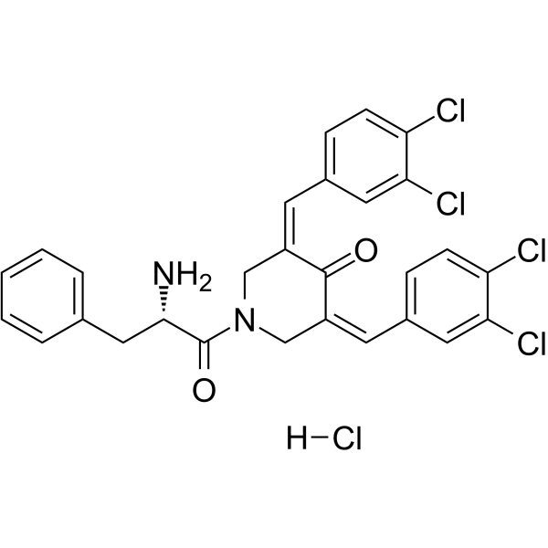 RA190是双亚苄基哌啶,通过与泛素受体RPN13的半胱氨酸88共价结合来抑制蛋白酶体功能。