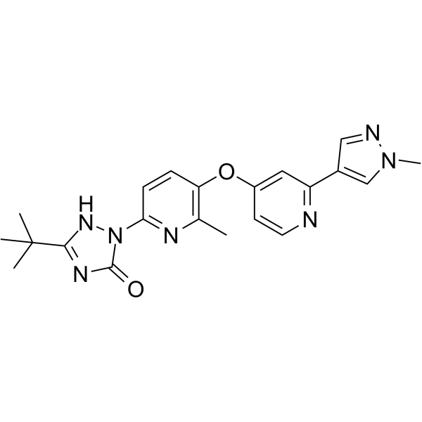 PLX647 dihydrochloride 是一种具有口服活性的,具有高度特异性的 FMS 和 KIT 双激酶抑制剂,IC50 分别为 28 和 16 nM。PLX647 dihydrochloride (1 μM) 在 400 个激酶组中显示出对 FMS 和 KIT 有选择性,但 FLT3 和 KDR 除外 (IC50= 91 和 130 nM)。