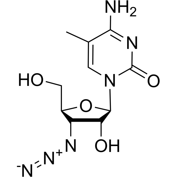 3'-Azido-3'-deoxy-5-methylcytidine (CS-92) 是一种有效的异嗜性小鼠白血病相关逆转录病毒 (XMRV) 抑制剂,作用于 MCF-7 细胞,CC50 为 43.5 μM。3'-Azido-3'-deoxy-5-methylcytidine (CS-92) 作用于外周血单核细胞 (PBM),抑制 HIV-1 逆转录酶,EC50 为 0.06 μM。3'-Azido-3'-deoxy-5-methylcytidine 是一种点击化学试剂。它含有 Azide 基团,可以和含有 Alkyne 基团的分子发生铜催化的叠氮-炔环加成反应(CuAAc)。还可以和含有 DBCO 或 BCN 基团的分子发生菌株促进的炔-叠氮环加成反应 (SPAAC)。