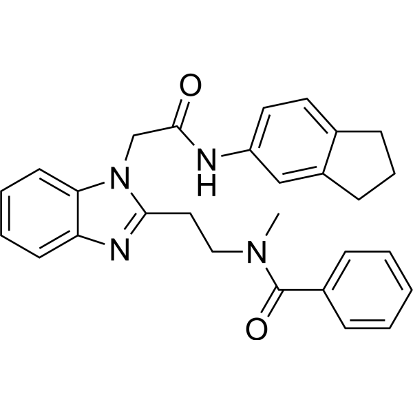 MSN-125 是有效的 Bax 和 Bak 低聚抑制剂。MSN-125 可防止线粒体外膜通透性 (MOMP),IC50 为 4 μM。MSN-125 有效抑制 HCT-116,BMK细胞和原代皮层神经元中 Bax/Bak 介导的凋亡,保护原代神经元免受谷氨酸兴奋性毒性。