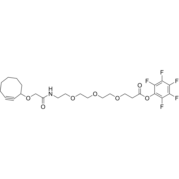 Cyclooctyne-O-amido-PEG3-PFP ester 是一种不可降解 (non-cleavable) 的含 3 个单元 PEG 的 ADC linker,可用于合成抗体偶联活性分子 (ADC)。