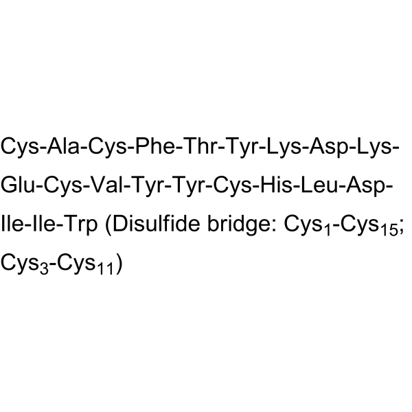[Ala2] Endothelin-3, human 是内皮素 ET-3 的线性类似物,其中 Ala 取代了 Cys 残基。ET-3 是一种血管活性肽,由人横纹肌肉瘤细胞系产生,在非肌肉来源的人肉瘤细胞系中不表达。ET-3 可作为一种旁分泌因子,促进内皮细胞的迁移。