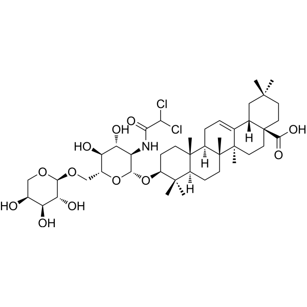 AlbA-DCA 是一种缀合物,是通过 Albiziabioside A (AlbA) 连接至二氯乙酸 (DCA) 亚基形成的。AlbA-DCA 可以诱导细胞内 ROS 显着增加,并减轻乳酸在肿瘤微环境中的积累,还可以选择性杀死癌细胞并诱导凋亡。