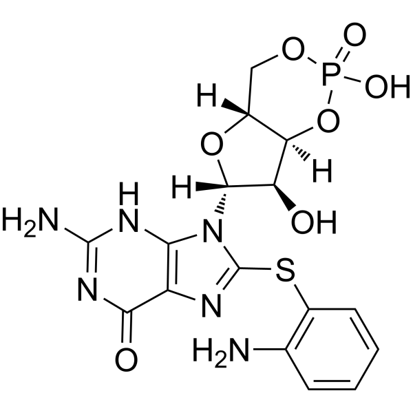 Rp-cAMPS sodium salt,一种 cAMP 的类似物,是一种 cAMP 诱导的 PKA I 和 PKA II 活化 (Ki 分别为 12.5 μM 和 4.5 μM) 的有效的,竞争性拮抗剂。Rp-cAMPS sodium salt 耐磷酸二酯酶水解。