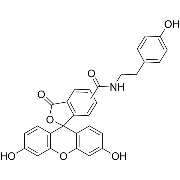 Fluorescein tyramide 是一种绿色荧光试剂 (λabs: 494 nm; λem: 517 nm)。Fluorescein tyramide 在免疫组化 (IHC)、ICC、原位杂交 (FISH) 和流式细胞术 (FCM) 中被广泛应用于信号放大。