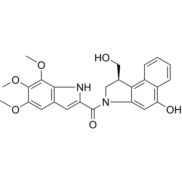Seco-Duocarmycin TM 是 Duocarmycins 家族的一种 DNA 烷化剂,可抑制 DNA 合成。Seco-Duocarmycin TM 是一种细胞毒性剂,用作抗体偶联活性分子中的细胞毒性成分。