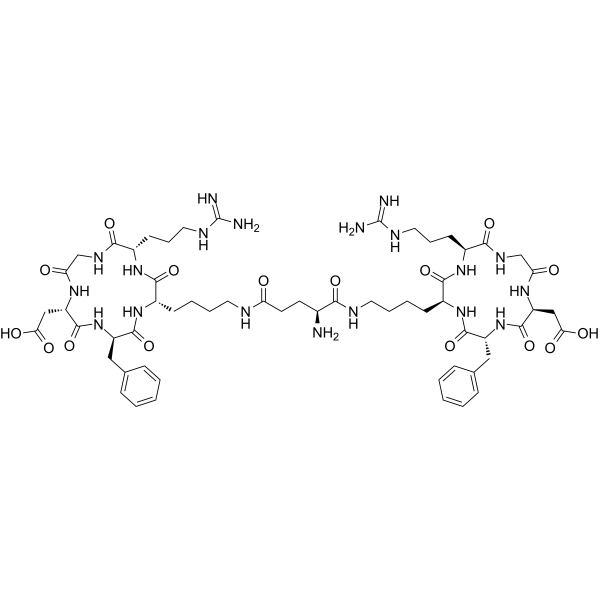 E(c(RGDfK)) 是一种 αvβ3 整联蛋白特异性结合部分,具有肿瘤靶向性。E(c(RGDfK)) 在人卵巢癌 OVCAR-3 异种移植肿瘤中的摄取增加,可用于癌症的研究。