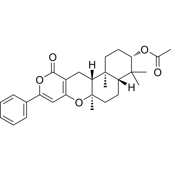 Phenylpyropene C (S14-95) 是一种 JAK/STAT 通路抑制剂,可以抑制 IFN-γ 介导的报告基因表达 (IC50=5.4~10.8 μM)。Phenylpyropene C 也是酰基辅酶 A 的抑制剂,IC50 值为 16.0 μM。