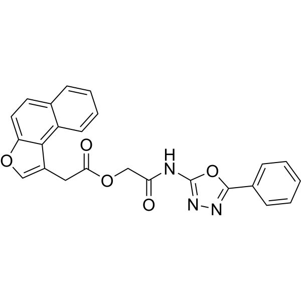 LtaS-IN-1 (compound 1771) 是一种高效的小分子脂磷壁酸 (LTA) 抑制剂,可抑制耐多药 (MDR) 大肠杆菌中脂磷壁酸 (LTA) 的合成,并可改变细胞壁的形态。LtaS-IN-1 单独使用抑制肠球菌的生长的 MIC 值范围从 0.5 μg/mL 到 64 μg/mL。LtaS-IN-1 与抗生素联合使用几乎可以完全抑制耐多药的大肠杆菌生长。