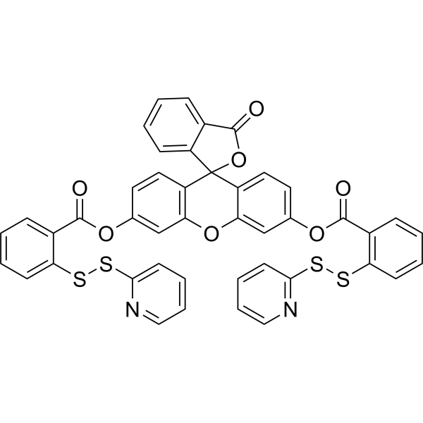 WSP-5 是一种荧光探针,用于快速检测生物样品和细胞中的 H2S。 WSP-5 选择性地快速与 H2S 反应,并通过基于反应的荧光开启策略显示荧光。