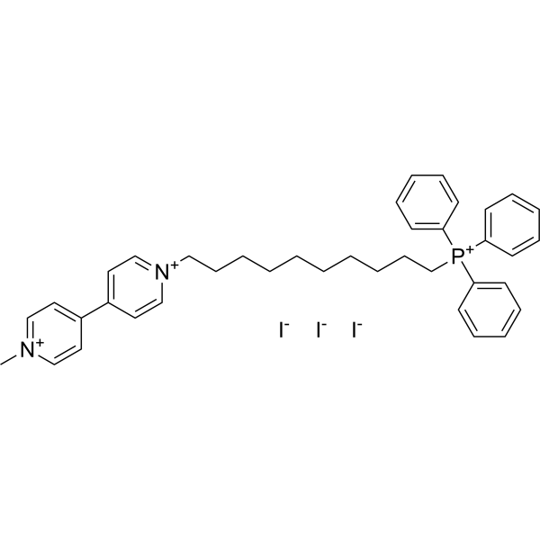 MitoPQ 是一个线粒体 (mitochondria) 靶向氧化还原循环剂。MitoPQ 通过复合物 I 黄素位点的氧化还原循环产生超氧化物,选择性地增加线粒体内超氧化物的产生。MitoPQ 可用于抗氧化研究。