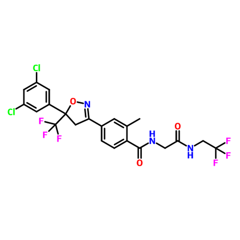 Fluralaner (INN)是一种全身性杀虫剂和杀螨剂,通过有效阻断 GABA 和 L-glutamate 氯化物通道。