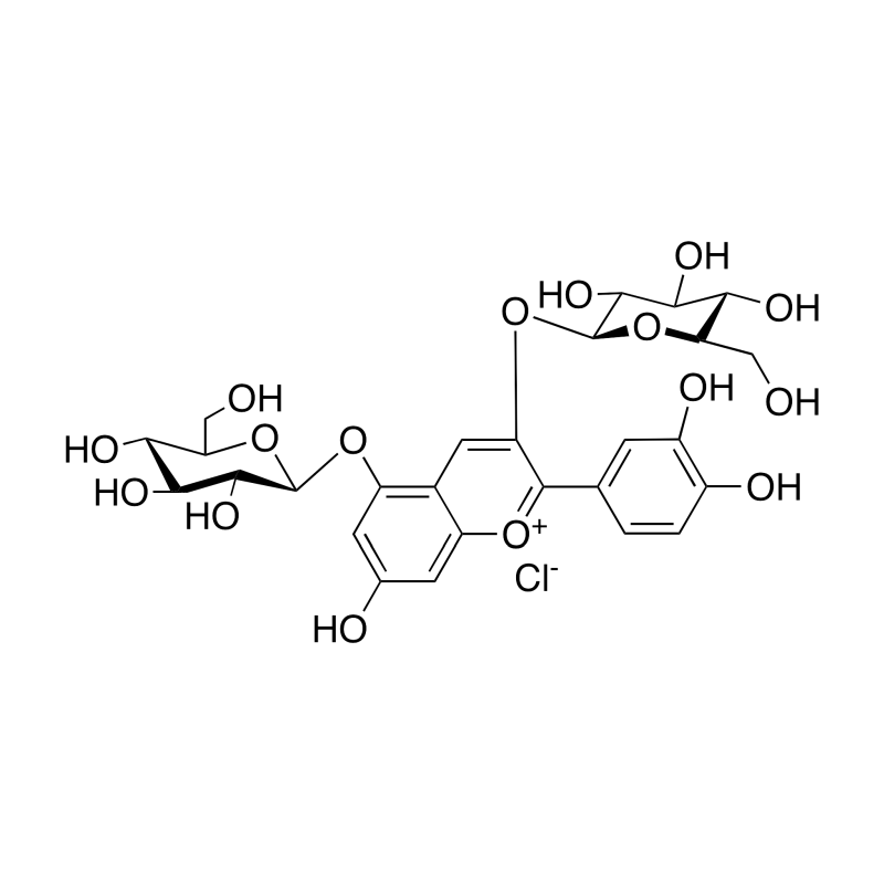 Cyanidin 3,5-diglucoside chloride 是一种花青素。Cyanidin 3,5-diglucoside chloride 抑制高压诱导的 GLAST 降低。Cyanidin 3,5-diglucoside chloride 具有青光眼研究潜力。