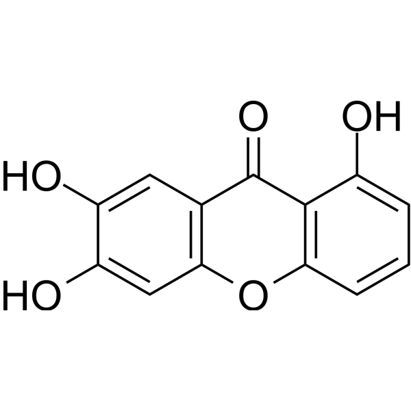 1,6,7-Trihydroxyxanthone 是一种有效的抗癌剂。1,6,7-Trihydroxyxanthone 抑制细胞增殖并诱导细胞细胞凋亡 (Apoptosis)。1,6,7-Trihydroxyxanthone 降低 Bmi-1 的表达,增加 P14,P16 的蛋白表达水平。