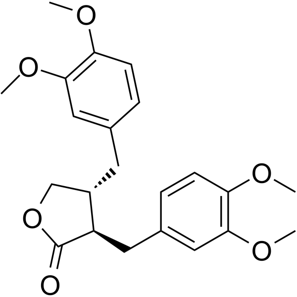 Dimethylmatairesinol (compound 8) 是一种从Hernandia nymphaeifolia 的种子中分离出来的木脂素化合物。Dimethylmatairesinol 对 KKU-M156 和 HepG2 细胞系具有细胞毒性,IC50s 分别为 5.4 μM (Emax 59%) 和 5.2 μM (Emax 78%)。