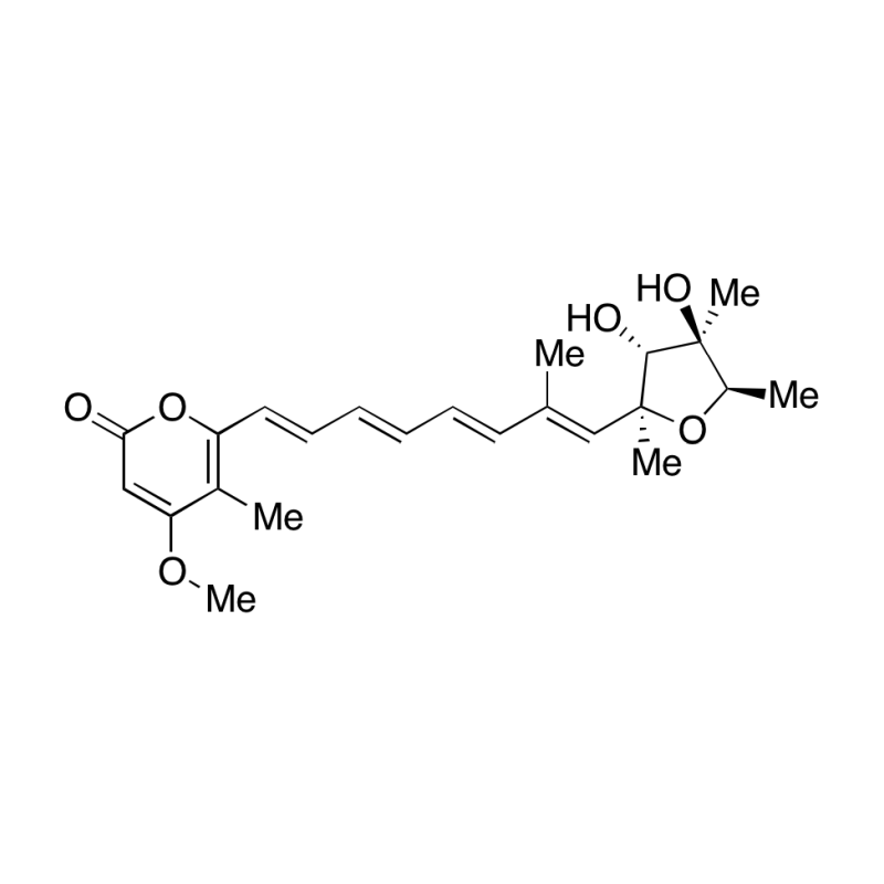 Citreoviridin 是一种来自 Penicillium citreoviride NRRL 2579 的毒素,抑制脑突触体 Na+/K+ ATPase,而在微粒体中,刺激 Na+/K+-ATPase 和 Mg2+-ATPase 活性。Citreoviridin 作用于人脐静脉内皮细胞,抑制细胞增殖并促进凋亡 (apoptosis)。
