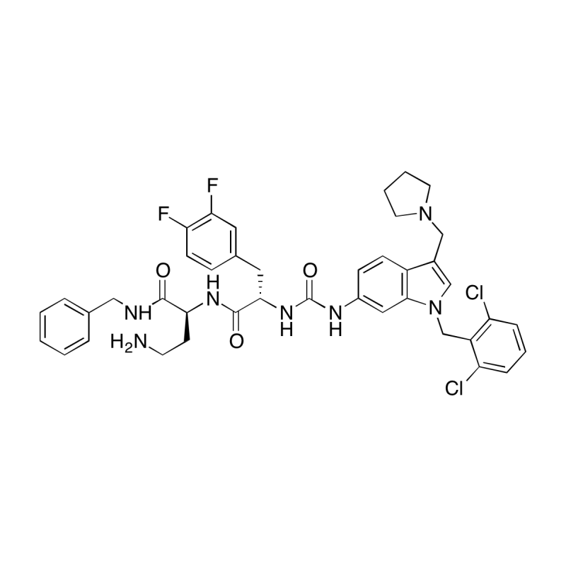 Apelin-36(human) 是一种内源性孤儿 G 蛋白偶联受体 APJ 激动剂,EC50 为 20 nM。Apelin-36(human) 对 HEK 293 细胞表达的人 APJ 受体有很高的亲和力 (pIC50=8.61)。Apelin-36(human) 与两种主要的生物活性有关:心血管和代谢。Apelin-36(human) 抑制 HIV-1 和 HIV-2 进入表达 APJ 的 NP2/CD4 细胞。