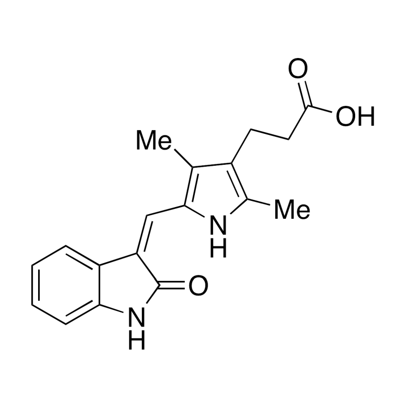 Orantinib (SU6668; TSU-68) 是多靶点的受体酪氨酸激酶抑制剂,对Flt-1,PDGFRβ 和FGFR1 的 Ki 值分别为 2.1 μM,8 nM 和 1.2 μM。