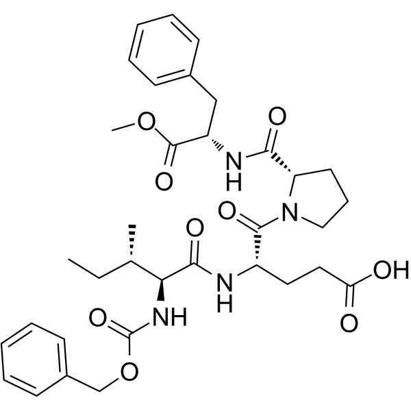 Acolbifene (EM-652) hydrochloride 是 EM800 的活性代谢产物,是一种口服活性的选择性雌激素受体调节剂 (SERM)。Acolbifene (EM-652) hydrochloride 抑制雌二醇诱导的 ERα (IC50 = 2 nM) 和 ERβ (IC50 = 0.4 nM) 转录活性。Acolbifene (EM-652) hydrochloride 对乳腺和子宫有明显的抗雌激素作用。Acolbifene (EM-652) hydrochloride 具有抗癌活性。