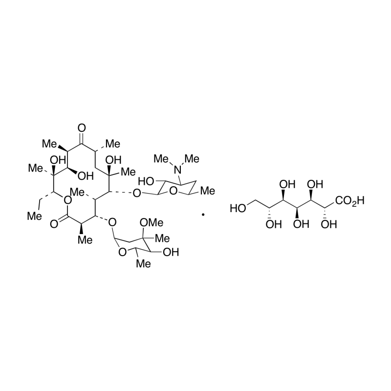Erythromycin gluceptate 是由放线菌产生的大环内酯类抗生素 (antibiotic),具有广泛的抗菌活性。Erythromycin gluceptate 通过结合细菌的 50S 核糖体亚基而起作用,并通过阻断转肽和/或易位反应来抑制 RNA 依赖性蛋白 (RNA-dependent protein synthesis) 的合成,而不会影响核酸的合成。Erythromycin gluceptate 在不同领域的研究中显示出抗肿瘤特性和保护神经的作用。