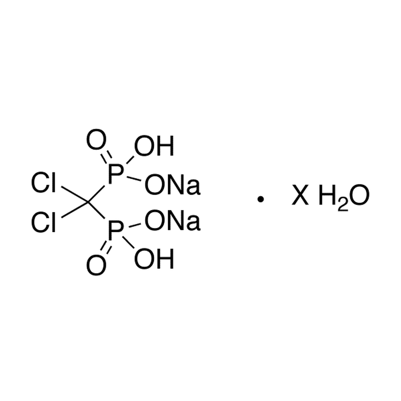 Clodronic acid (Clodronate) disodium salt,第一代双磷酸盐,一种具有口服活性的破骨细胞骨吸收 (osteoclastic bone resorption) 的抑制剂。Clodronic acid disodium salt 可用于高骨转换状态、Paget’s病和溶骨性骨转移中。