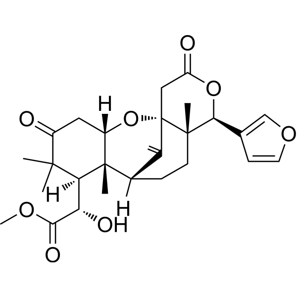 6-Methylhydroxyyangolensate 是一种可从 Khaya grandifoliola 中提取的柠檬苦素。 6-Methylhydroxyyangolensate 在体外具有低抗疟活性,对恶性疟原虫(W2/Indochina clone)的 IC50 为 21.59 μg/ml。