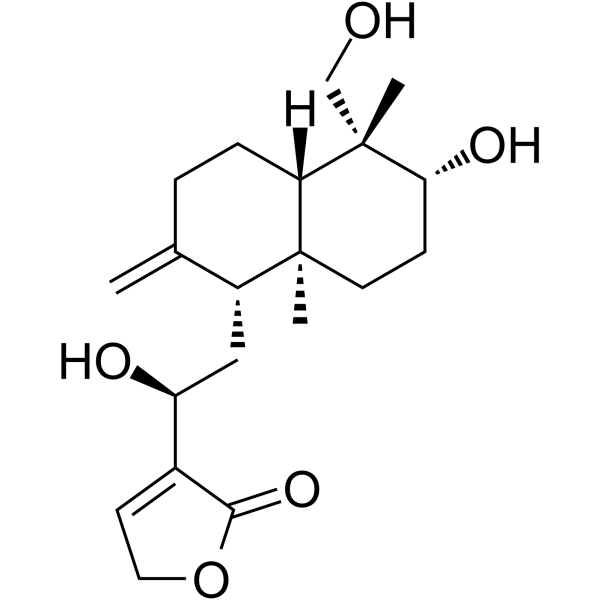 14-Deoxy-12-hydroxyandrographolide 是一种从Andrographis paniculata Nees 的叶子中分离得到的拉丹型二萜化合物。