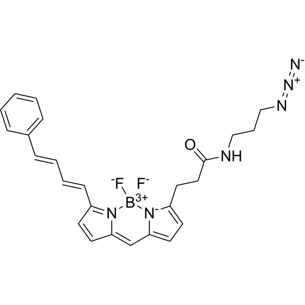 BDP 581/591 azide 是 BDP 581/591 的叠氮化物衍生物,BDP 581/591 是一种通用的光稳定荧光团。BDP 581/591 azide 可用于与小分子和生物分子结合,构建荧光极化分析的示踪剂和显微镜探针。