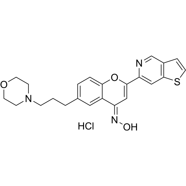 Foliglurax monohydrochloride (PXT002331 monohydrochloride) 是一种可渗透脑的,有效的选择性代谢型谷氨酸受体 4 正变构调节剂 (mGluR4 PAM),EC50 为 79 nM。抗帕金森病。