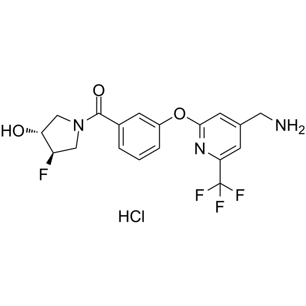 PAT-1251 Hydrochloride 是一种口服有效的选择性赖氨酰氧化酶样蛋白 2 (LOXL2) 抑制剂,对 hLOXL2 和 hLOXL3 的 IC50 值分别为 0.71 和 1.17 μM,同时对小鼠、大鼠和狗 LOXL2 的抑制作用很强,IC50 值分别为 0.10,0.12 和 0.16 μM。PAT-1251 Hydrochloride 可用于多种纤维性疾病的研究。