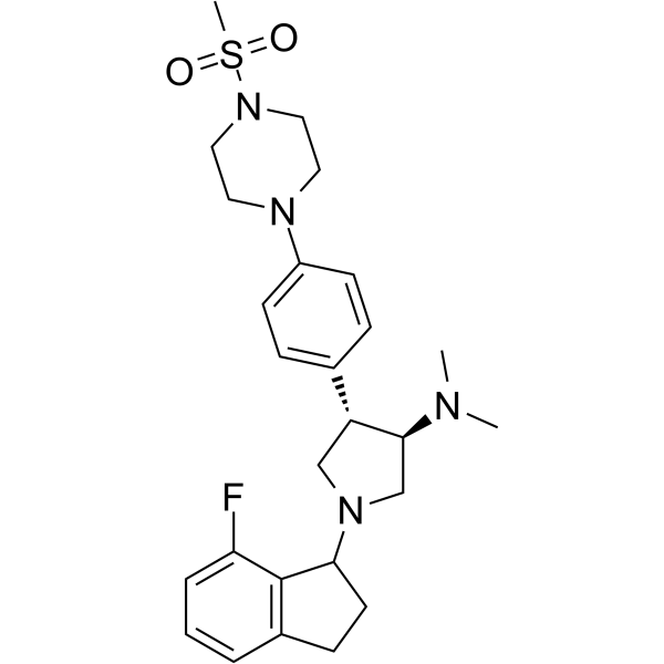 (R)-ZINC-3573 是一种选择性的 Mas-related G protein-coupled receptor X2 (MRGPRX2) 激动剂,EC50 值为 740 nM。(R)-ZINC-3573 可作为 MRGPRX2 探针用于疼痛和瘙痒的研究。
