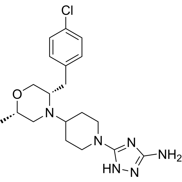 OATD-01 是一种高效、口服活性、 first-in-class、选择性几丁质酶 (chitinase) 抑制剂,对 CHIT1 具有低纳摩尔活性 (hCHIT1, IC50=23 nM)。OATD-01 在多个物种中显示出良好的药代动力学特征。OATD-01 在体内具有显著的抗纤维化活性,用于肺纤维化 (IPF) 研究。