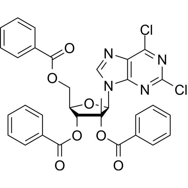 2,6-Dichloro-9-(2-c-methyl-2,3,5-tri-O-benzoyl-beta-D-ribofuranosyl)purine dibenzoate 是一种嘌呤核苷类似物。嘌呤核苷类似物具有广泛的抗肿瘤活性,靶向惰性淋巴系统恶性肿瘤。这一过程中的抗癌机制依赖于抑制 DNA 合成,诱导细胞凋亡 (apoptosis) 等。