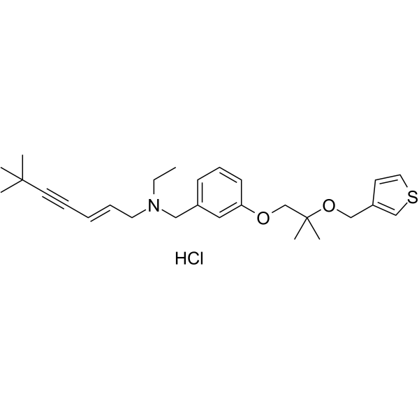 Pexidartinib hydrochloride (PLX-3397 hydrochloride) 是一种有效、具有口服活性的,选择性 ATP-竞争性的集落刺激因子 1 (CSF1R 或 M-CSFR) 和 c-Kit 抑制剂,IC50 值分别为 20 和 10 nM。Pexidartinib hydrochloride 对 c-Kit 和 CSF1R 的选择性是对其他相关激酶的 10-100 倍,例如 FLT3,KDR (VEGFR2),LCK,FLT1 (VEGFR1) 和 NTRK3 (TRKC),IC50 值分别为 160,350,860,880 和 890 nM。Pexidartinib hydrochloride 可以诱导细胞凋亡 (apoptosis) 具有抗肿瘤活性。