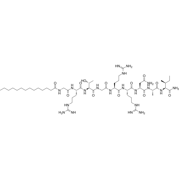 PKI 14-22 amide,myristoylated 是一种有效的 cAMP 依赖性 PKA 抑制剂。PKI 14-22 amide,myristoylated 可降低 IgG 介导的吞噬反应,也可抑制中性粒细胞粘附。