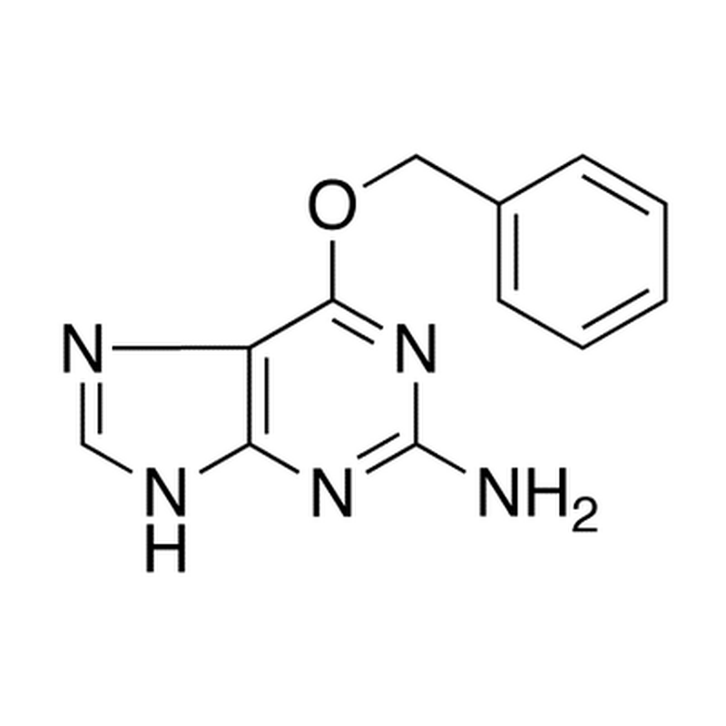 O6-Benzylguanine 是鸟嘌呤类似物,是 DNA 修复酶 O6 烷基鸟嘌呤DNA烷基转移酶 (MGMT/AGT) 抑制剂。O6-Benzylguanine 作为 AGT 底物,将其苄基转移到 AGT 半胱氨酸残基上,从而不可逆地灭活 AGT 并阻止 DNA 修复。O6-Benzylguanine 诱导肿瘤细胞凋亡,具有抗肿瘤活性。