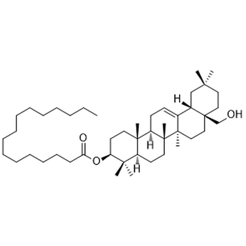 Erythrodiol 3-O-palmitate 是一种可以从秃疮花 (Dicranostigma leptopodum (Maxim) Fedde)、红花龙胆 (Gentiana rhodantha) 或獐牙菜 (Swertia kouitchensis) 中分离得到的天然产物。Erythrodiol 3-O-palmitate 具有抗肿瘤活性,在 100 ug/mL 浓度下对 K562 细胞的增殖抑制率为 47%。