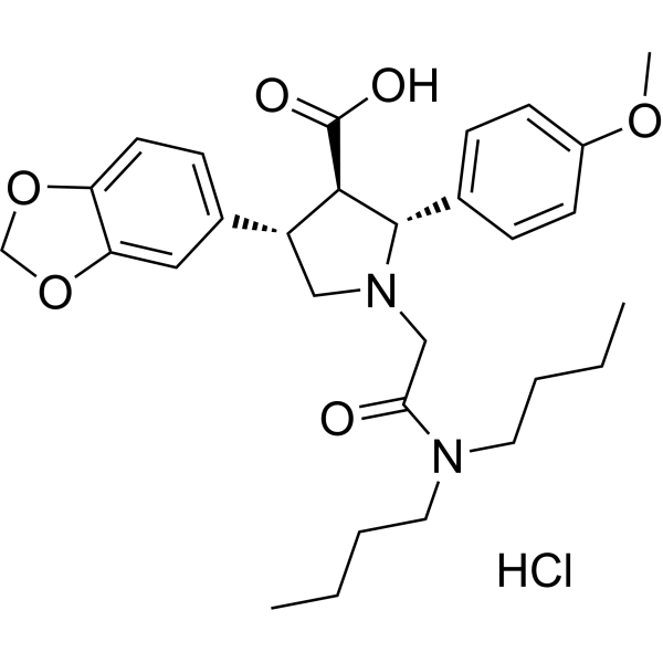 Atrasentan hydrochloride (ABT-627 hydrochloride) 是一种有效的选择性 内皮素 A 受体 (endothelin A receptor) 拮抗剂,抑制 ETA 的活性,IC50 值为 0.0551 nM。
