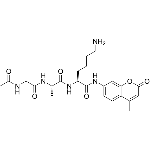 Ac-GAK-AMC 是一种荧光底物,可以用于测定蛋白酶活性。AMC(7-amino-4-methylcoumarin)是一种荧光基团,在存在蛋白酶的条件下,蛋白酶会将 Ac-GAK-AMC 水解成产生荧光的产物。