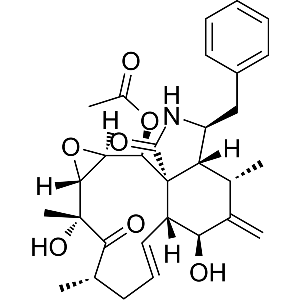 19,20-Epoxycytochalasin D 是一种细胞松弛素,是一种来自 Nemania sp 的真菌代谢物。19,20-Epoxycytochalasin D 显示出有效的体外抗疟原虫活性和植物毒性。
