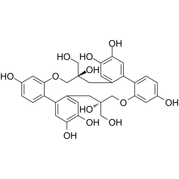 Caesappanin C 是一种来自印度尼西亚 Caesalpinia sappan L. 心材的乙醇提取物的联苯二聚体,在体外显示出对原代成骨细胞的强增殖刺激活性。 Caesappanin C 具有刺激骨形成和再生的潜力。