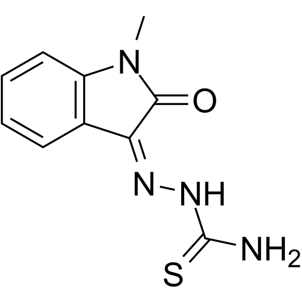 Methisazone (Marboran) 是一种抗病毒剂,通过抑制 mRNA 和蛋白质合成起作用。Methisazone 也是一种 SARS-CoV-2 (COVID-19) 抑制剂。Methisazone 主要用于抑制痘病毒。