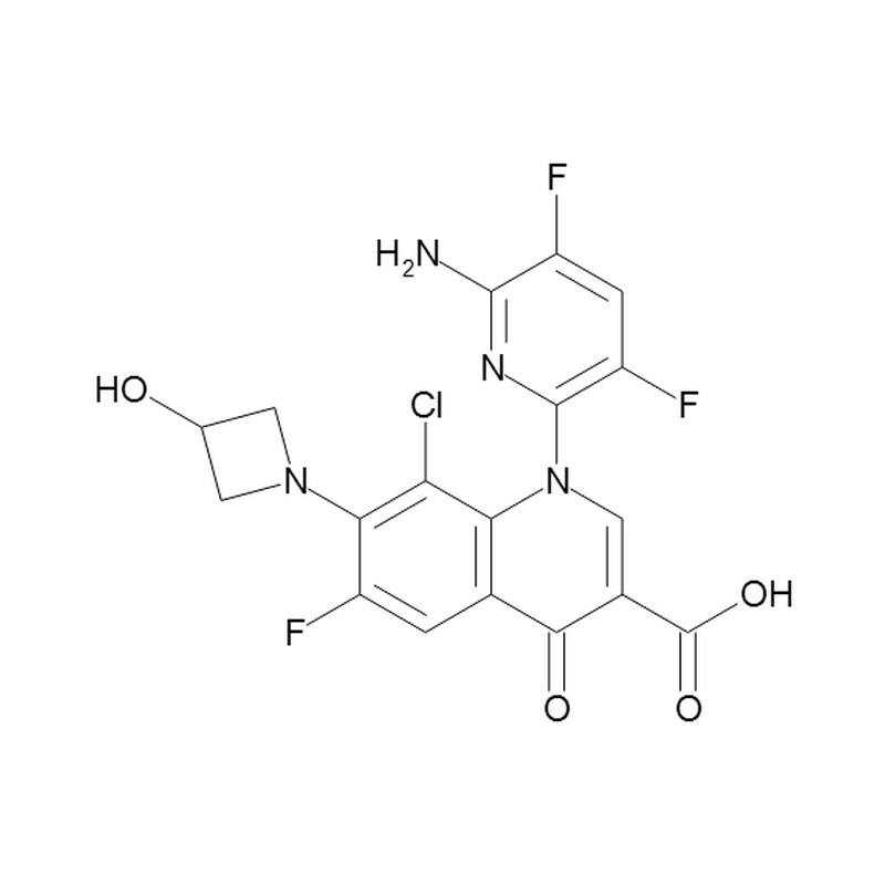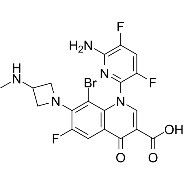 Delafloxacin (RX-3341; WQ-3034; ABT492) 是一种广谱氟喹诺酮类抗生素。Delafloxacin 具有广泛的活性,对耐药性的金黄色葡萄球菌,肺炎链球菌和肺炎克雷伯菌都有效。