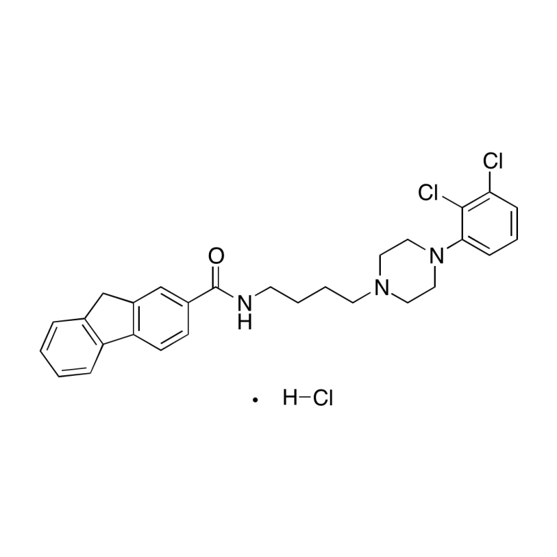 NGB 2904 是一种有效,选择性,具有口服活性和可透过血脑屏障的多巴胺 D3 受体的拮抗剂,Ki 值为 1.4 nM。NGB 2904 对 D3 的选择性高于 D2,5-HT2,α1,D4,D1 和 D5 受体 (Ki=217,223,642,>5000,>10000 和 >10000 nM)。NGB 2904 可拮抗 Quinpirole 刺激的有丝分裂。